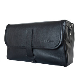 Небольшая кожаная мужская сумка через плечо Oreto (Орето) выполнена из натуральной кожи черного цвета. Под клапаном, закрывающимся на магнитную кнопку, находится открытое основное отделение и накладной карман на магнитной кнопке. На самом клапане с внутренней стороны находится карман на молнии.
